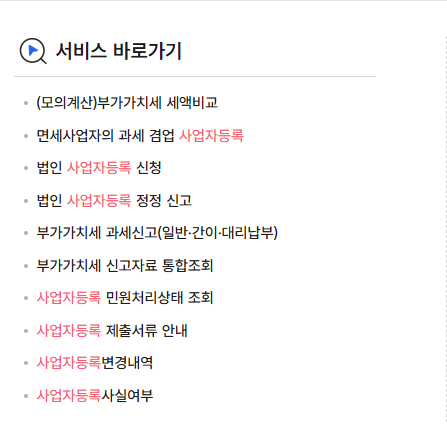 - 하단에서 [사업자등록증명] 메뉴 클릭