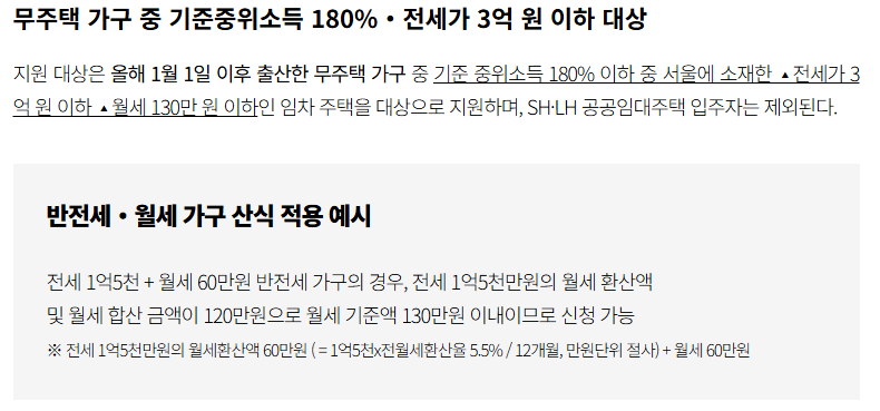 - 대상 가구: 2025년 1월 1일 ~ 6월 30일 사이 출산한 무주택 서울시 거주 가구