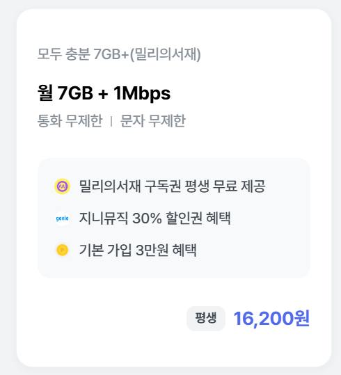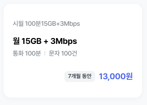 1GB+100분 | 7,700원 | 최저가, 가벼운 사용 |