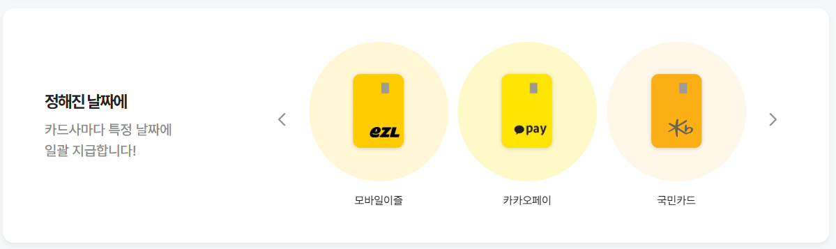 - 신한카드, 우리카드, KB국민카드, 케이뱅크 카드 중 선택